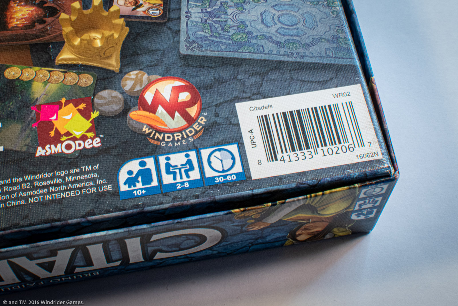 Box for Citadels (Z-Man Edition). Logo, Graphic Design, and Art Direction by Samuel R. Shimota.